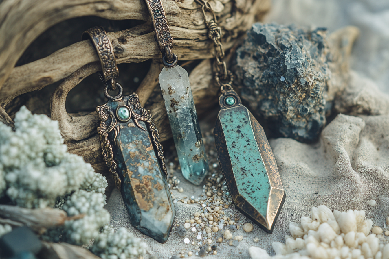 One of a Kind Strawberry Quartz Patinated Brutalist Pendant on Leather Adjustable Slip-tie Necklace